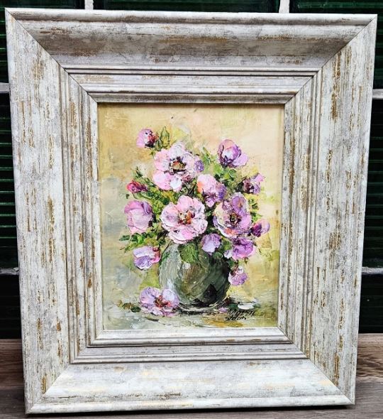 Tablou Flori roz realizat i ulei, tehnica cutit