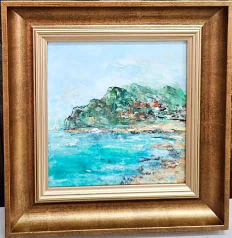 Tablou Peisaj Grecia realizat in cutit, tehnica ulei